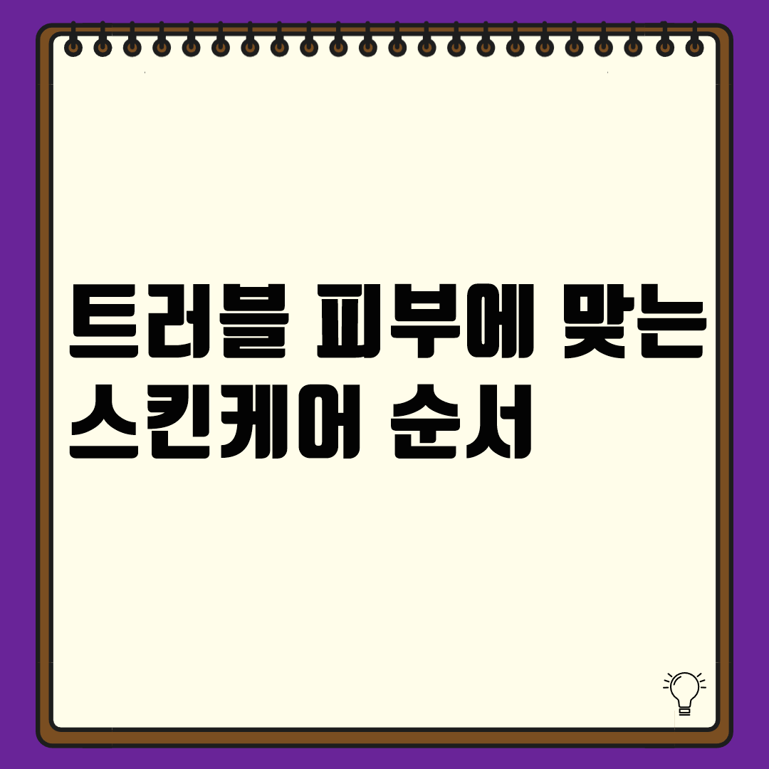 - 트러블이 심할수록 스킨케어 단계를 줄이고 진정 중심으로 구성